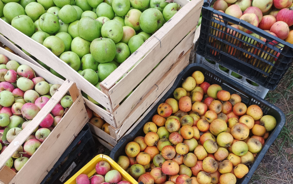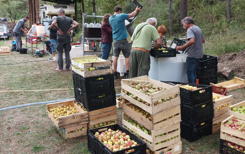 Pommes, poires, coings, raisins récoltés aux quatre coins de nos vallées.